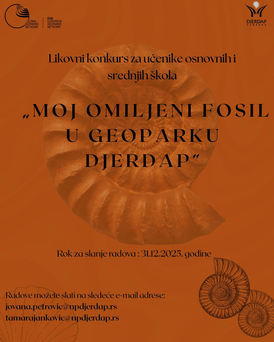 У жељи да прославимо богатство фосилног наслеђа, позивамо све ученике основних и средњих школа са територије Геопарка Ђердап да учествују на конкурсу „Мој омиљени фосил у Геопарку Ђердап“ у оквиру Европске мреже геопаркова.